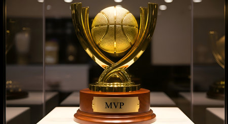 A vintage golden basketball trophy, isolated on aesthetic background