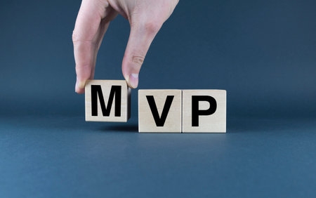 Minimum viable product MVP. Cubes form words Minimum viable product MVP. The concept of minimum viable product