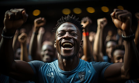 boxing champion of African descent raising his hands
