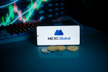 Dhaka, Bangladesh 18 September 2025:Phone showing MEXC Global logo, coins, and market data, highlighting cryptocurrency trading
