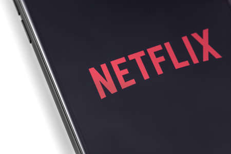 Tula, Russia - March 02, 2021: Netflix logo on iPhone display