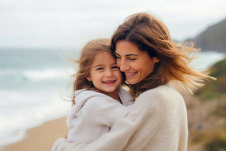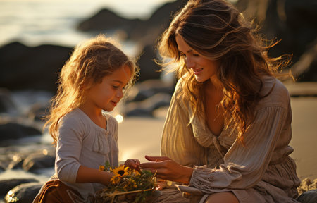 Mother and Daughter Bonding by the Seashore