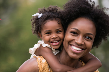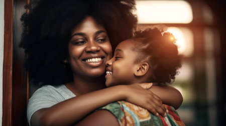 photo of happy family black mother and daughter, generative AI