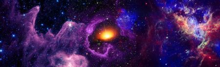 Realistic nebula and shining stars. Colorful cosmos with stardust and milky way.