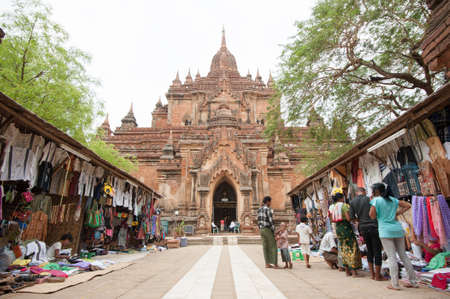 Bagan,Myanmar-March 18,2011: The Myanmar people visiting Shwezigon Paya (pagoda) in Bagan, Myanmar. It was first built by King Anaweahta then completed by Kyansittha (1084-1113).