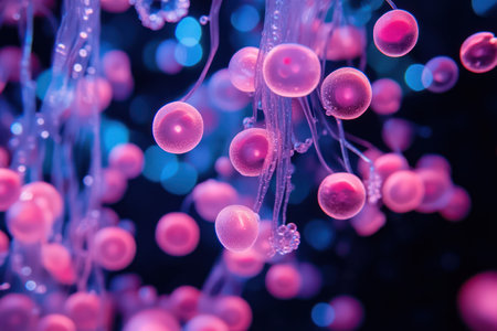 3d illustration of jellyfish with glowing particles, close-up