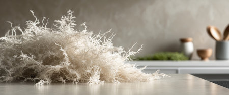 AI Generated. Close Up of Dried White Sea Moss Healthy Food Concept in a Cozy Chic Modern Kitchen Setting