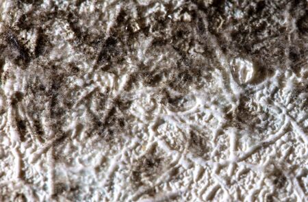 Mold on food magnification. texture of toxic green mold with dark green and white orange spots. Spoiled long-term storage product