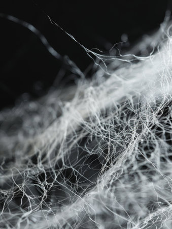 Macro shot showing the intricate network of microfibers, highlighting the interlaced strands and their gossamer connections