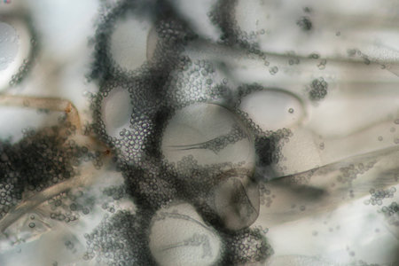 sporangia of a microscopic organism, microbiology concept