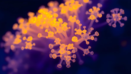 Close-up view reveals intricate details of viruses, showing their structure and texture as observed through a microscope during pandemic monitoring activities.