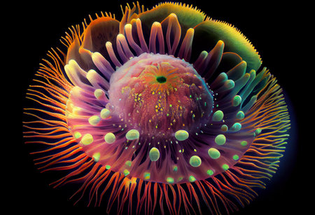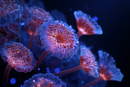 An AI generated illustration of a close up shot of a group of coral polyps