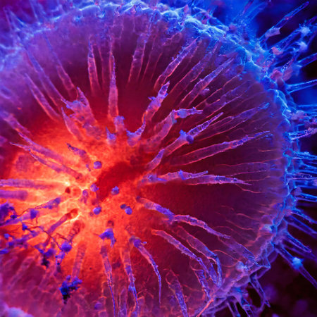 AI generated closeup macro shot of a luminous virtual generic virus detail