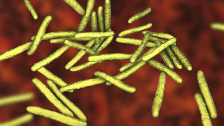 Bacteria Mycobacterium tuberculosis, the causative agent of tuberculosis, 3D illustration, can be used for M. leprae, M. avium complex and other mycobacteria