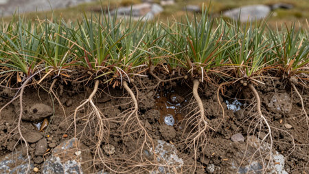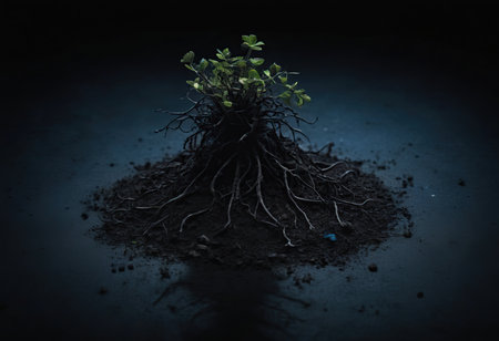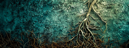 Rooted in Earth: Witness the focused growth of roots in the ground, nurturing life beneath the surface with resilience and vitality