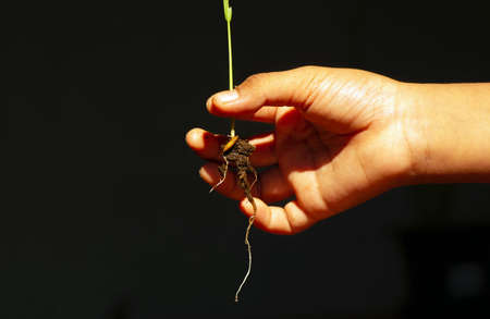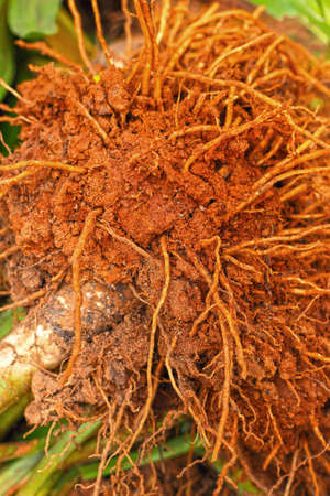 Garden plant seedling and root ball enlarged. Spring. Garden.