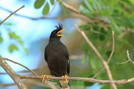 Common Myna bird (Acridotheres tristis) Sedentary bird in Thailand