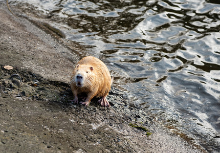Curious coypu looking for something to eat. Funny wild animal also known as myocastor coypus or river rat.