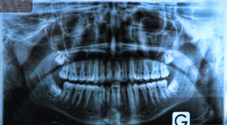 X-ray of human mouth with teeth bones