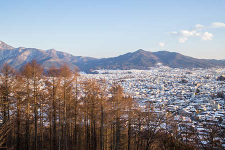 Top view of Fujiyoshida in winter, Japan