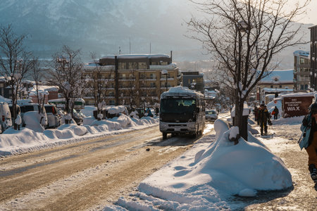 Yudanaka, Japan - January 08, 2020: City Scape View to the Yudanaka Streets