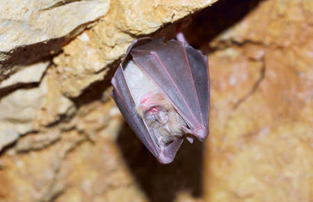 esser false vampire bat are sleeping in the cave hanging on the ceiling period midday
