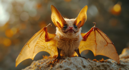 Close-up of a bat with spread wings and detailed features for wildlife enthusiasts.