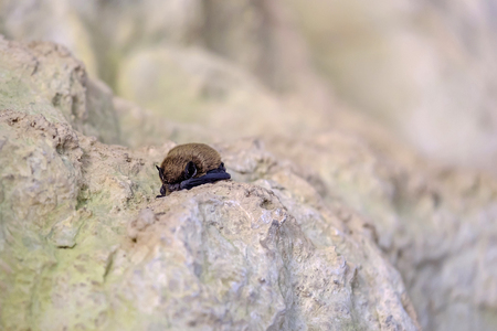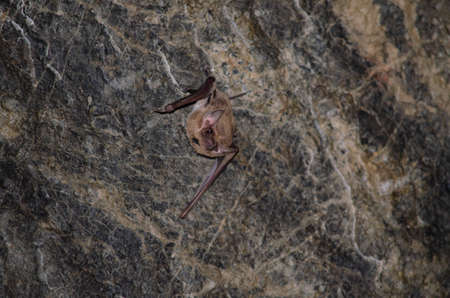 Bat sleeps in the cave hanging on the ceiling