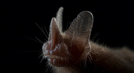 Intricate Details of a Bats Head Translucent Ears and Sensitive Whiskers Against a Dark Background