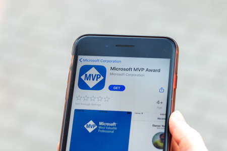 New York, USA - 1 May 2020: Microsoft MVP Award app logo close-up on phone screen, Illustrative Editorial.