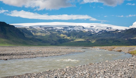 Volcano and glacier river, the extreme terrain in Iceland