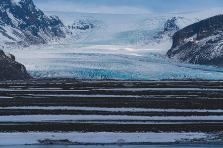 Beautiful scenery landscape of Svinafellsjokull Glacier in Vatnajokull National Park in Iceland.