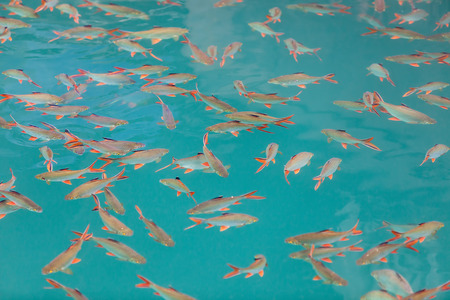 A school of Red tailed ,Tinfoil Barb fish in Cheow Lan Dam Khao Sok National Park Thailand