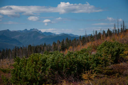 Mountain panorama of the Tatra Mountains from Kasprowy Wierch (Kasper Peak) on a autumn day in Poland