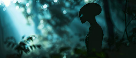 AI Generated. Alien encounter in the heart of the forest a mysterious meeting that merges the unknown with the familiar