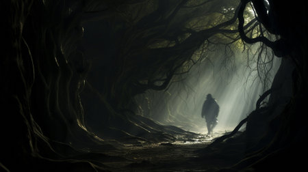 Mystical Encounter: Silhouette of a Figure Immersed in the Enchanted Forest