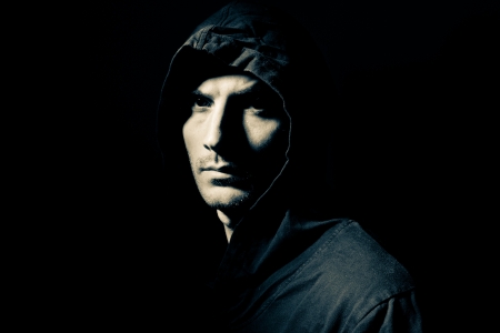 Portrait of a man in a hood dark key