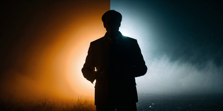 Mysterious portrait of man with light and shadow on face