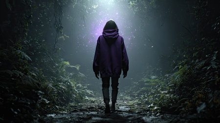 Mystical Encounter: Silhouette of a Figure Immersed in the Enchanted Forest