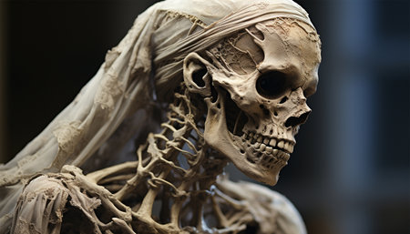 Human skeleton model in the dark close up