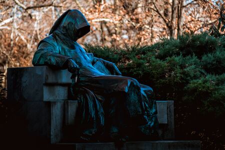 Statue of Anonymus in Vajdahunyad Castle. Budapest, Hungary