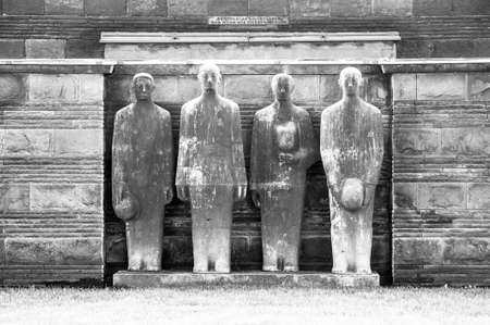 Yper, Belgium - August 7, 2021. Detail of the war monuments at Langemark cemetery. Langemark is the most famous German first world war cemetery in Belgium.