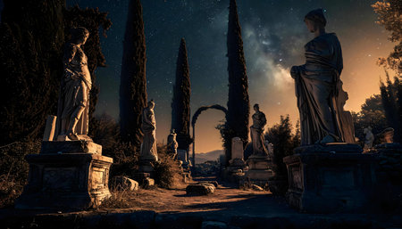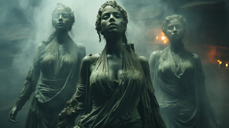 A verdant collection of feminine statues, sculpted with artistry and poise, embodying the essence of personhood and evoking a sense of awe and wonder
