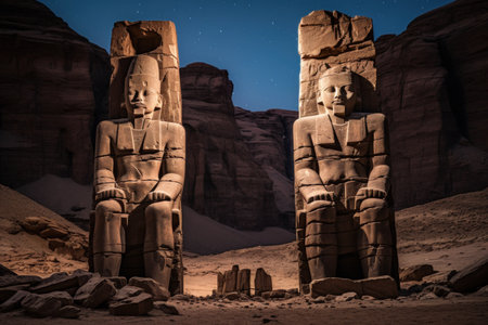Ancient stone colossi, towering giants carved from living rock - Generative AI