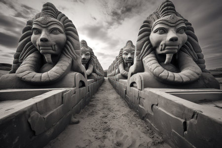 Enigmatic sphinxes posing riddles to test the minds of adventurers - Generative AI