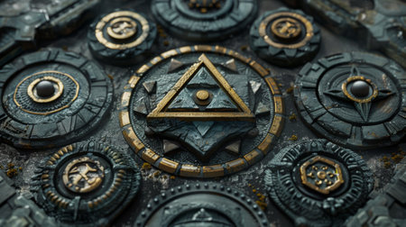 Intricately carved stones with ancient symbols and mystic patterns