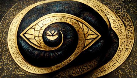 Ornate golden eye of providence symbol on dark background