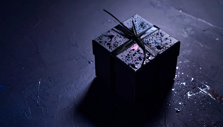 A mysterious gift box on a dark background glows in the dark. holiday concept. generated AI.