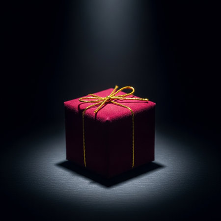 A vibrant red gift box emanates sparkling light and floating particles, set against a dark background, evoking feelings of wonder and surprise.