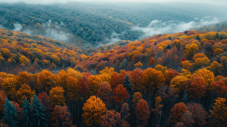 Vibrant autumn forest captured from above with stunning contrast and rich colors